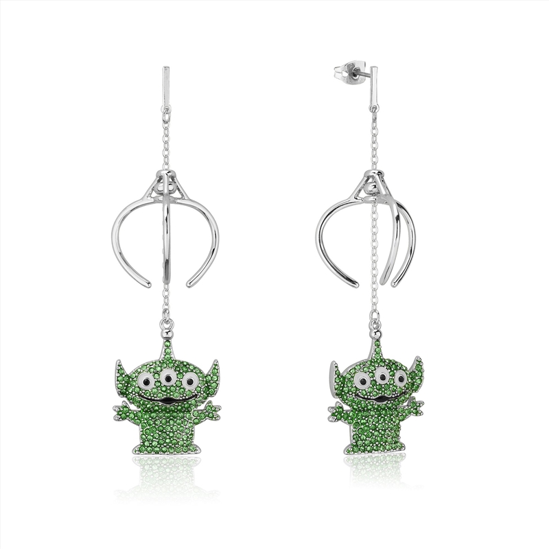 Title: Disney Pixar Toy Story Alien Crystal Claw Drop Earrings - Silver