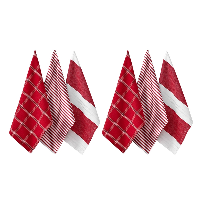 Title: Ladelle Set of 6 Christmas Brick Cotton Tea Towels Design 1